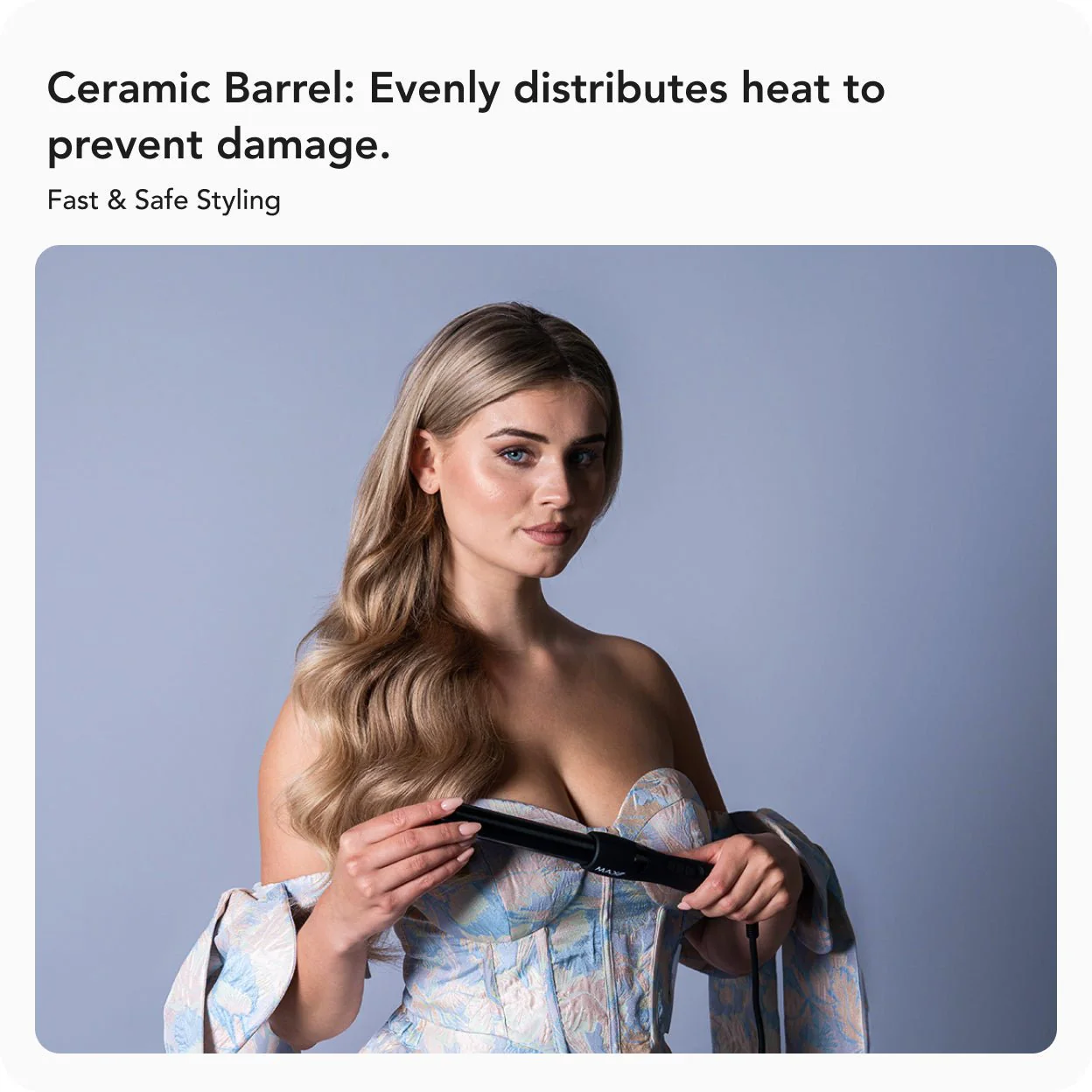- Ceramic Barrel: Evenly distributes heat to prevent damage.